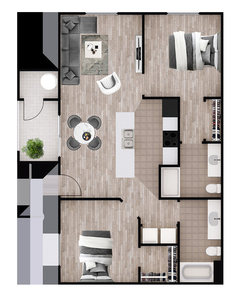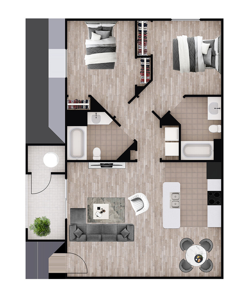 2 Beds, 2 Baths, 989 sq ftModel Gallery