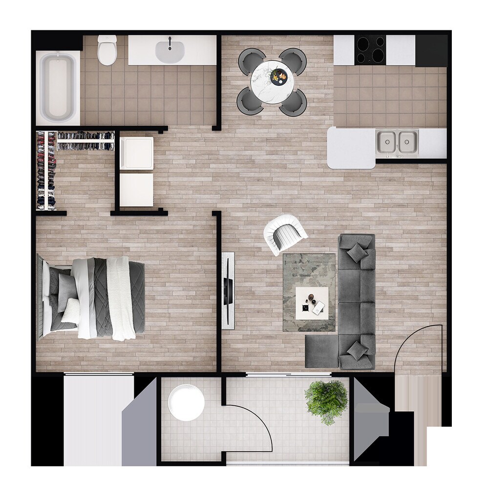 1 Bed, 1 Bath, 676 sq ftAvailable NowModel Gallery