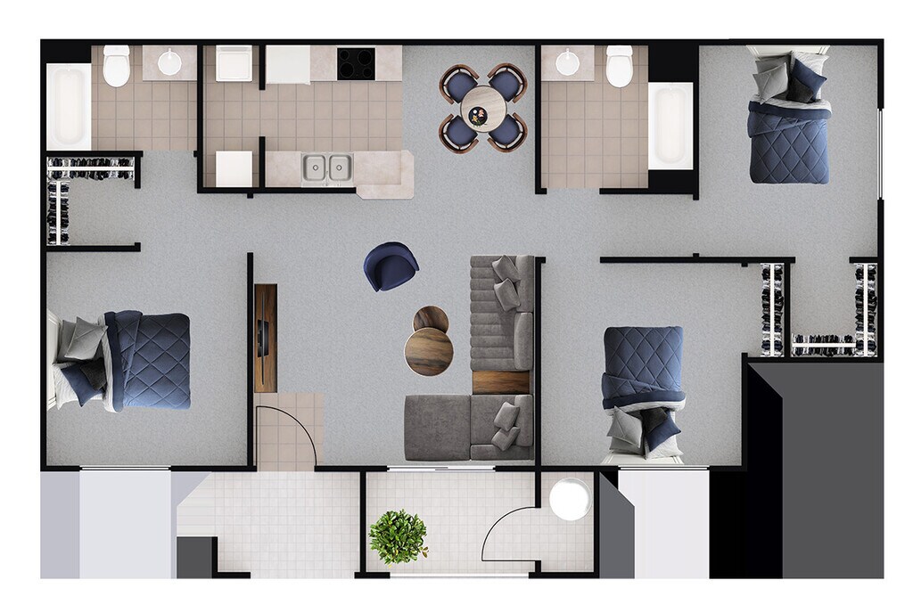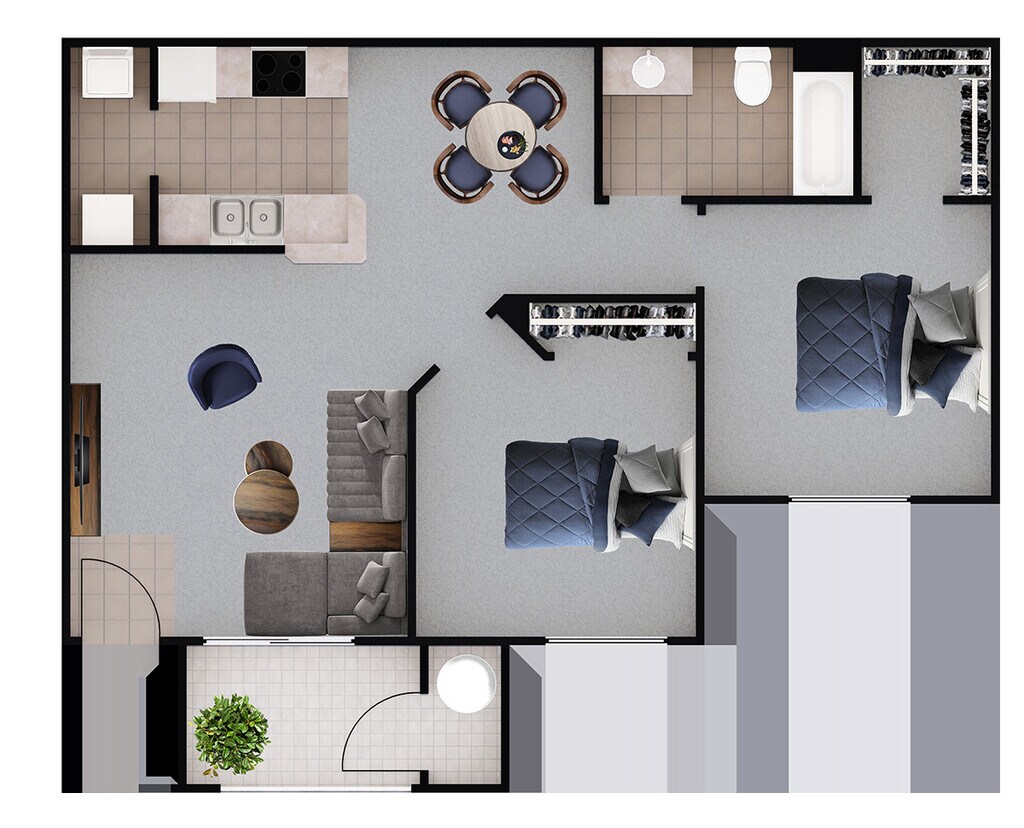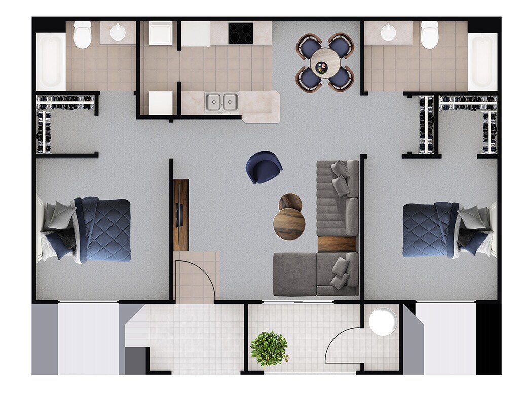 2 Beds, 2 Baths, 991 sq ftAvailable NowModel Gallery