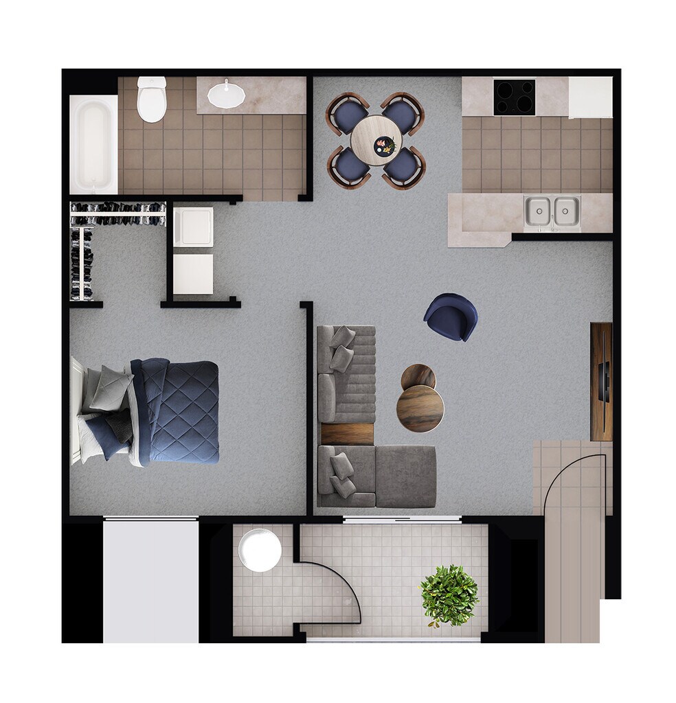 1 Bed, 1 Bath, 665 sq ftAvailable NowModel Gallery