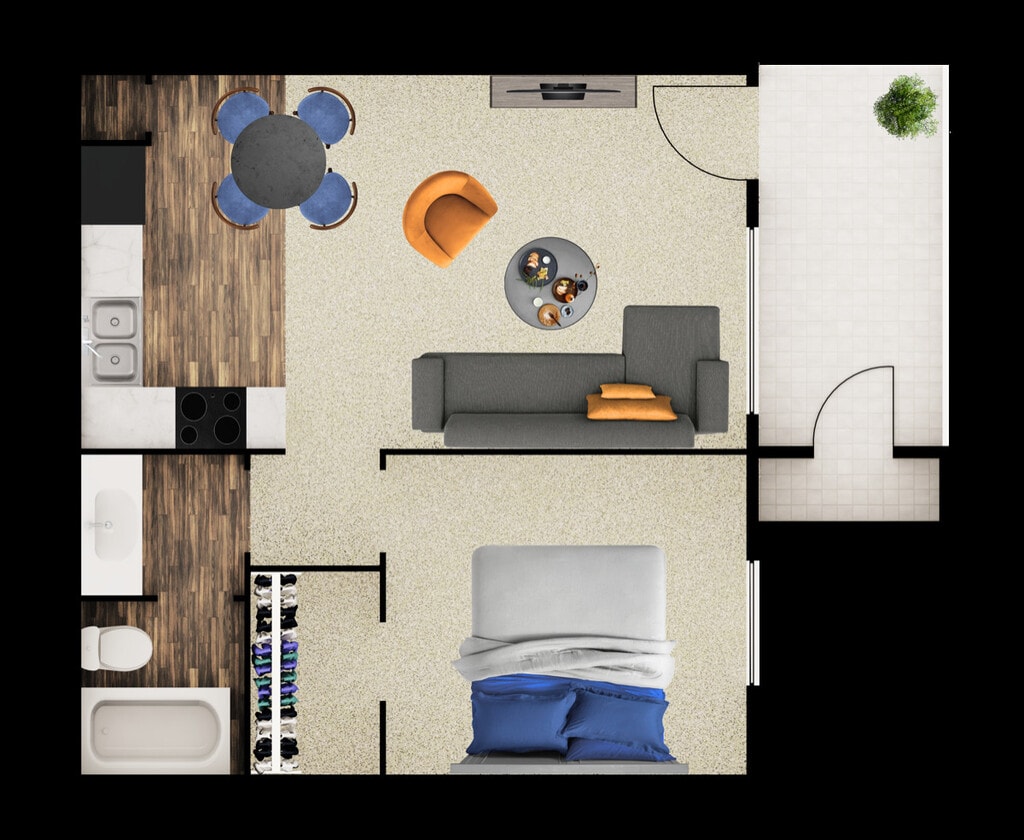 Apartment Model: 1x1 A1From $7171 Bedroom, 1 Bath, 412 sq ftAvailable Now![]()