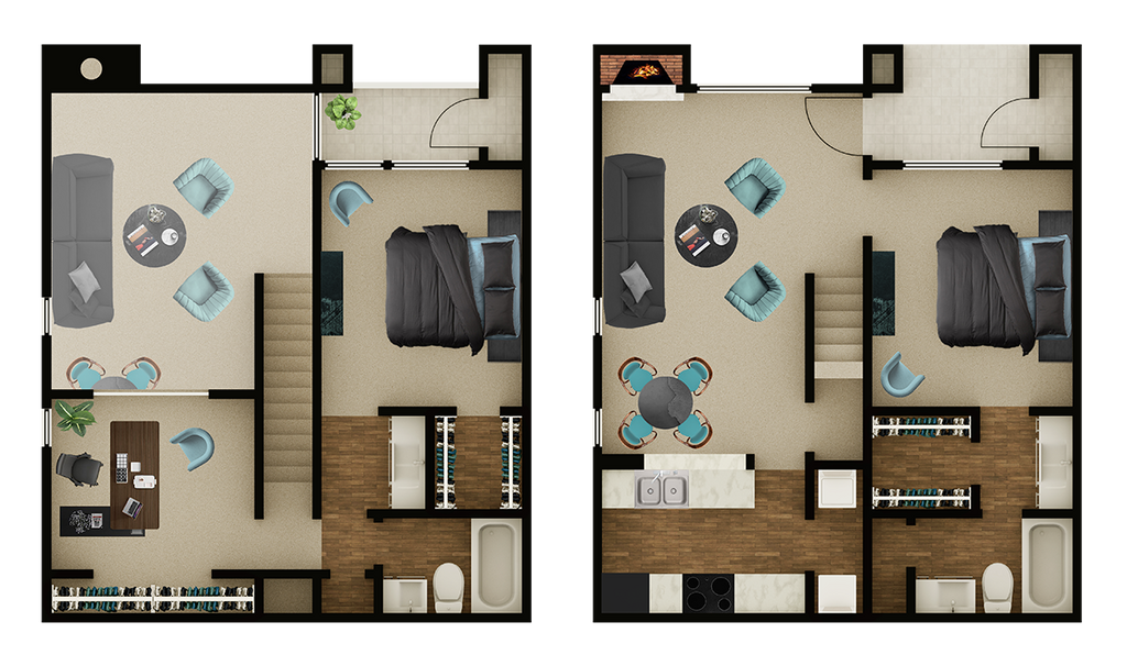- Studio, One, Two & Two Bdrm w/Loft Floorplans