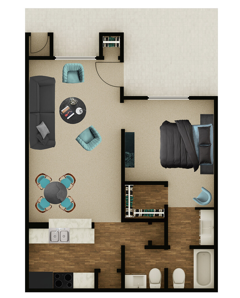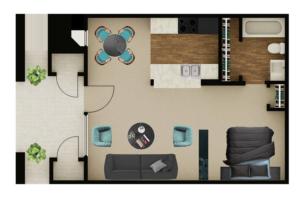 Studio, 1 Bath, 480 sq ftModel Gallery