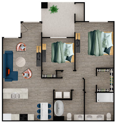 The Place at Riverwalk offers 1 to 2 Bedroom apartments starting from $1,400 and having 866–1,315 sq ft. Here is the current pricing and availability: