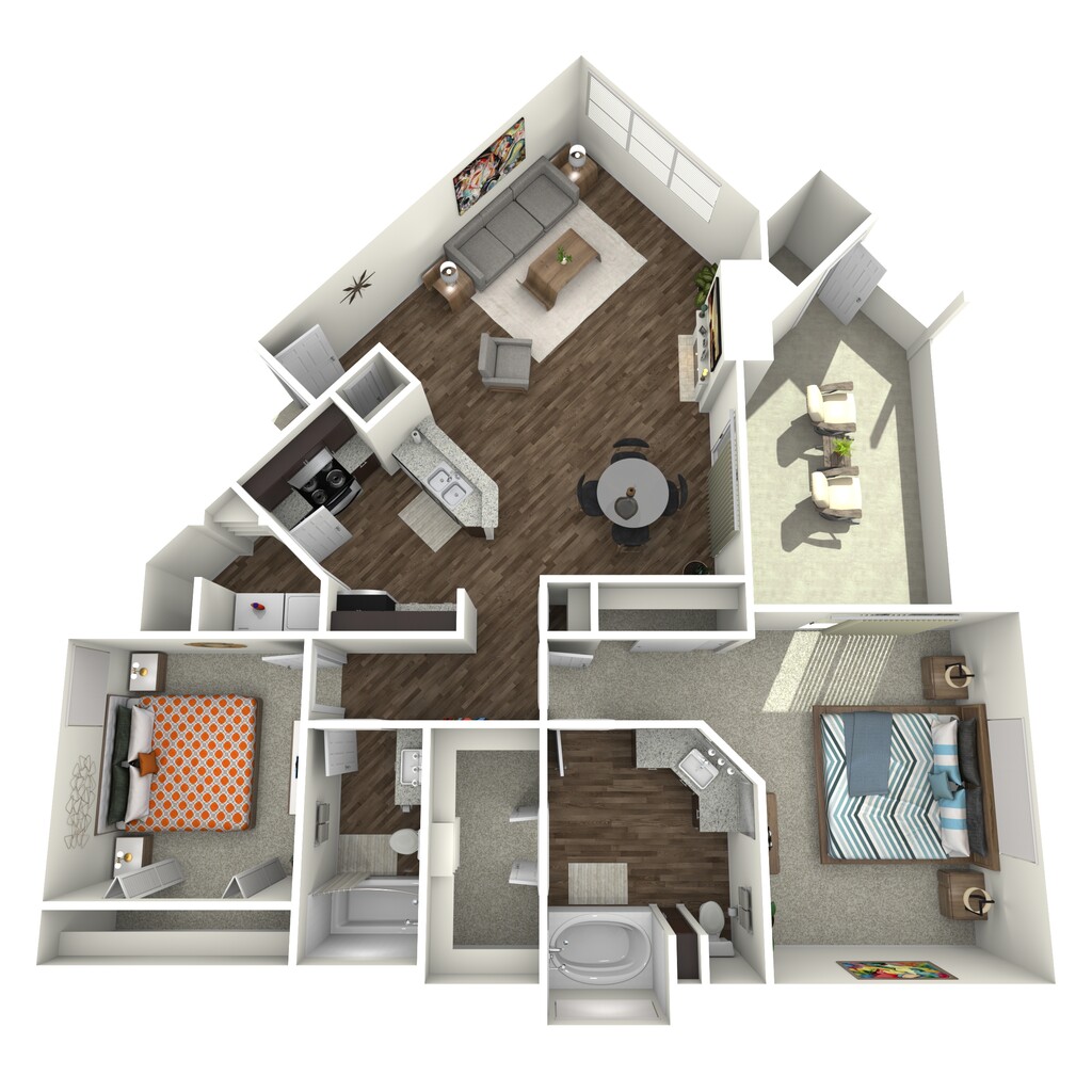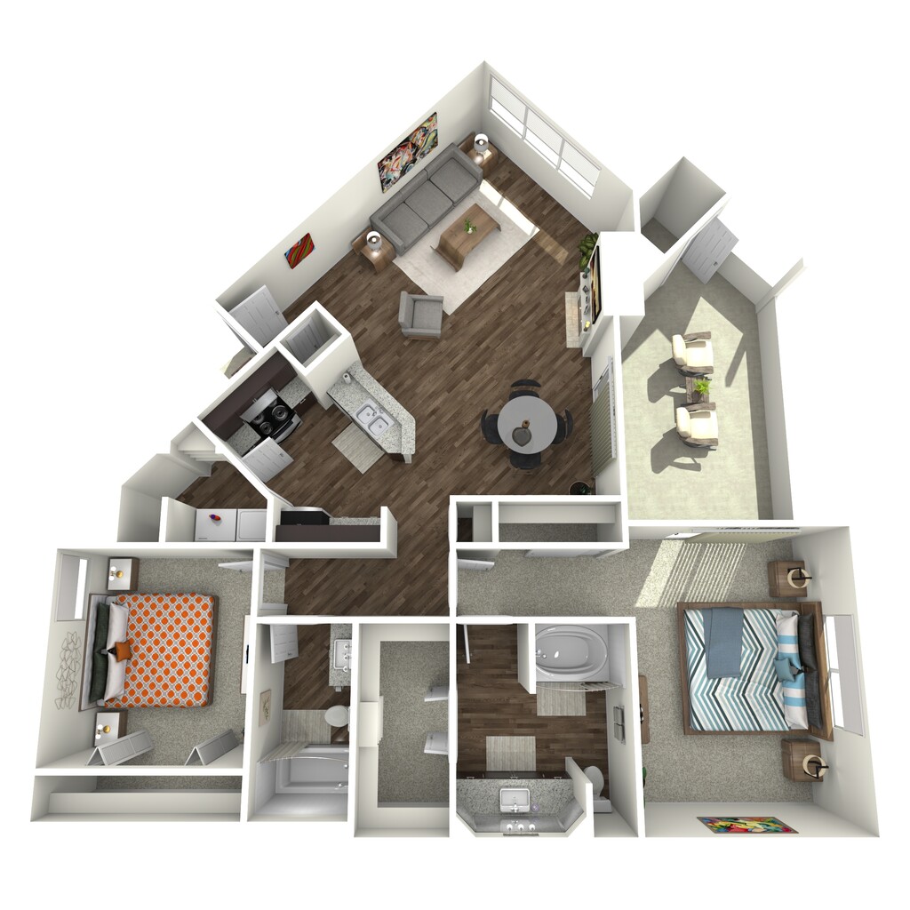 Apartment Model: 2 Bed 2 Bath (B3)From $1,2832 Bedroom, 2 Bath, 1161 sq ftAvailable Now![]()