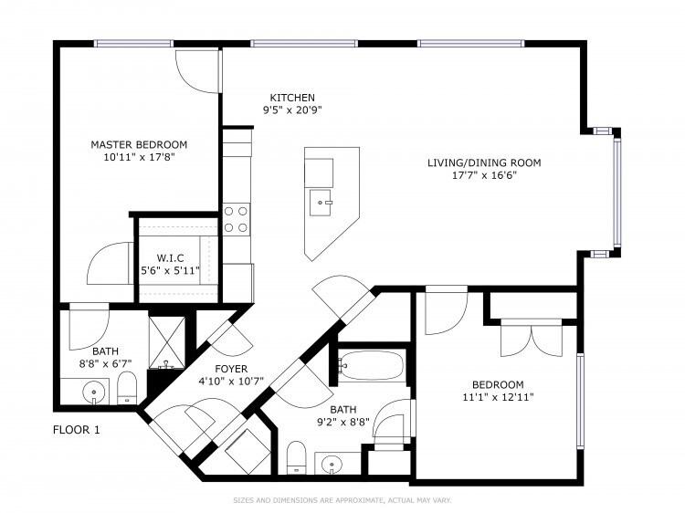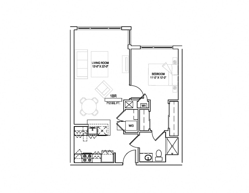 1 Bed, 1 Bath, 687 sq ftPlus FeesAvailable NowModel Gallery