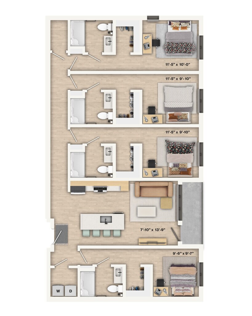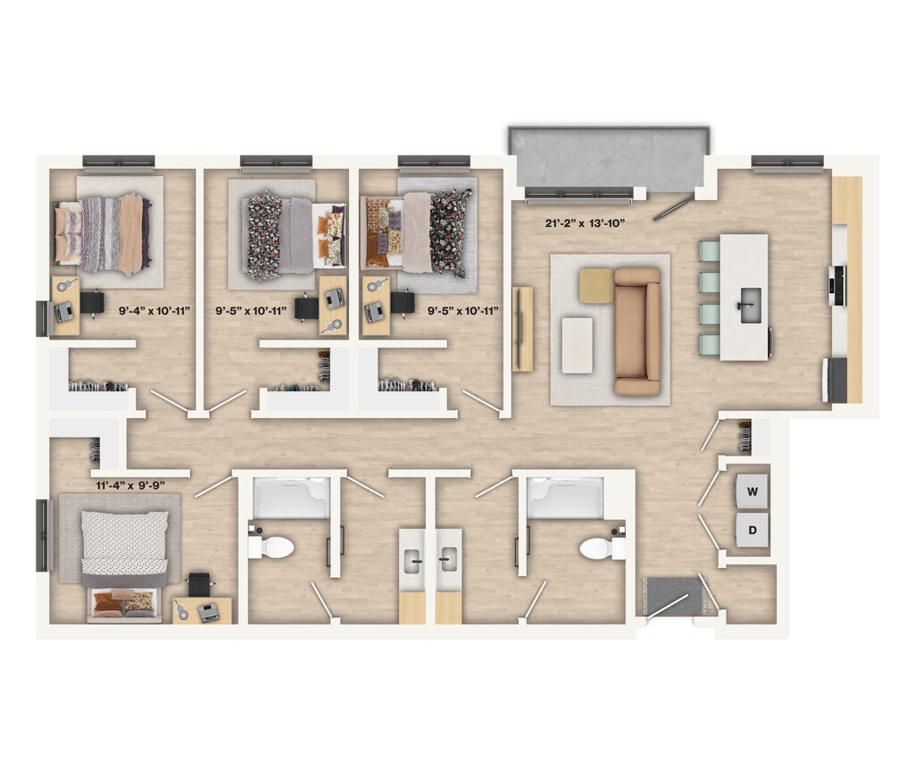 Apartment Model: 4 Bedroom - Model I$9494 Bedroom, 4 Bath, 1653 sq ftAvailable August 15, 2026![]()