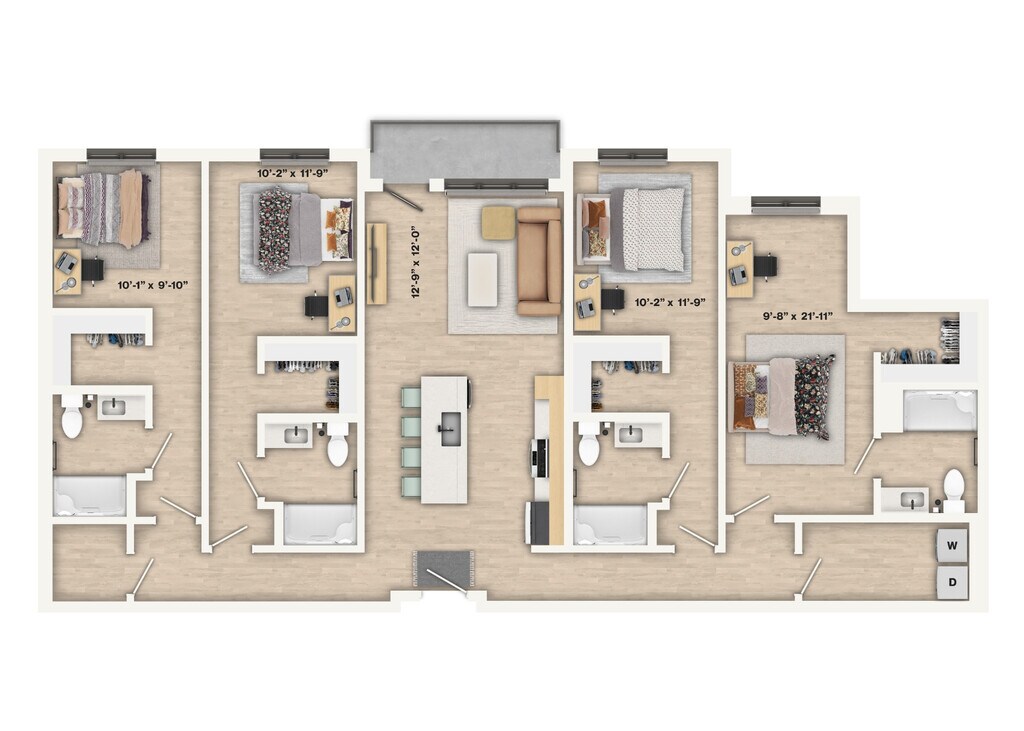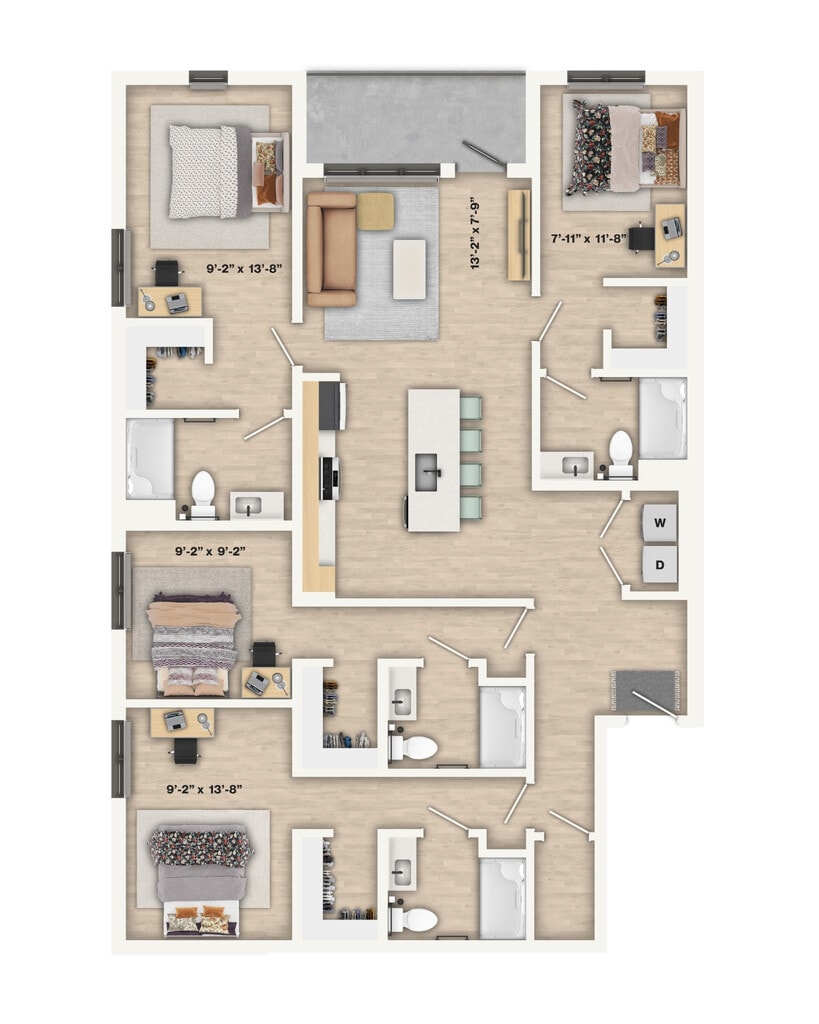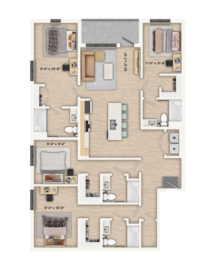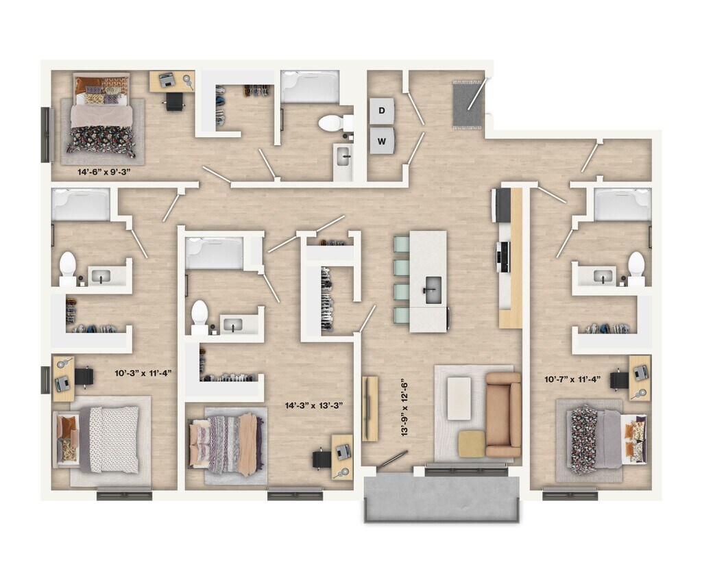 4 Beds, 4 Baths, 1769 sq ftAvailable Aug 15, 2026Largest 4 BedroomThis is the largest 4 Bedroom at this PropertyModel Gallery