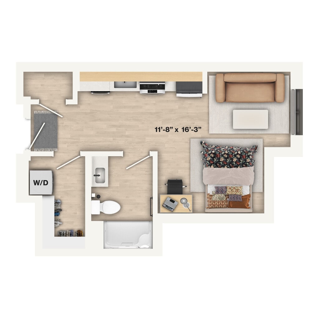 Apartment Model: Studio - Model A$1,499Studio, 1 Bath, 445 sq ftAvailable August 15, 2026![]()