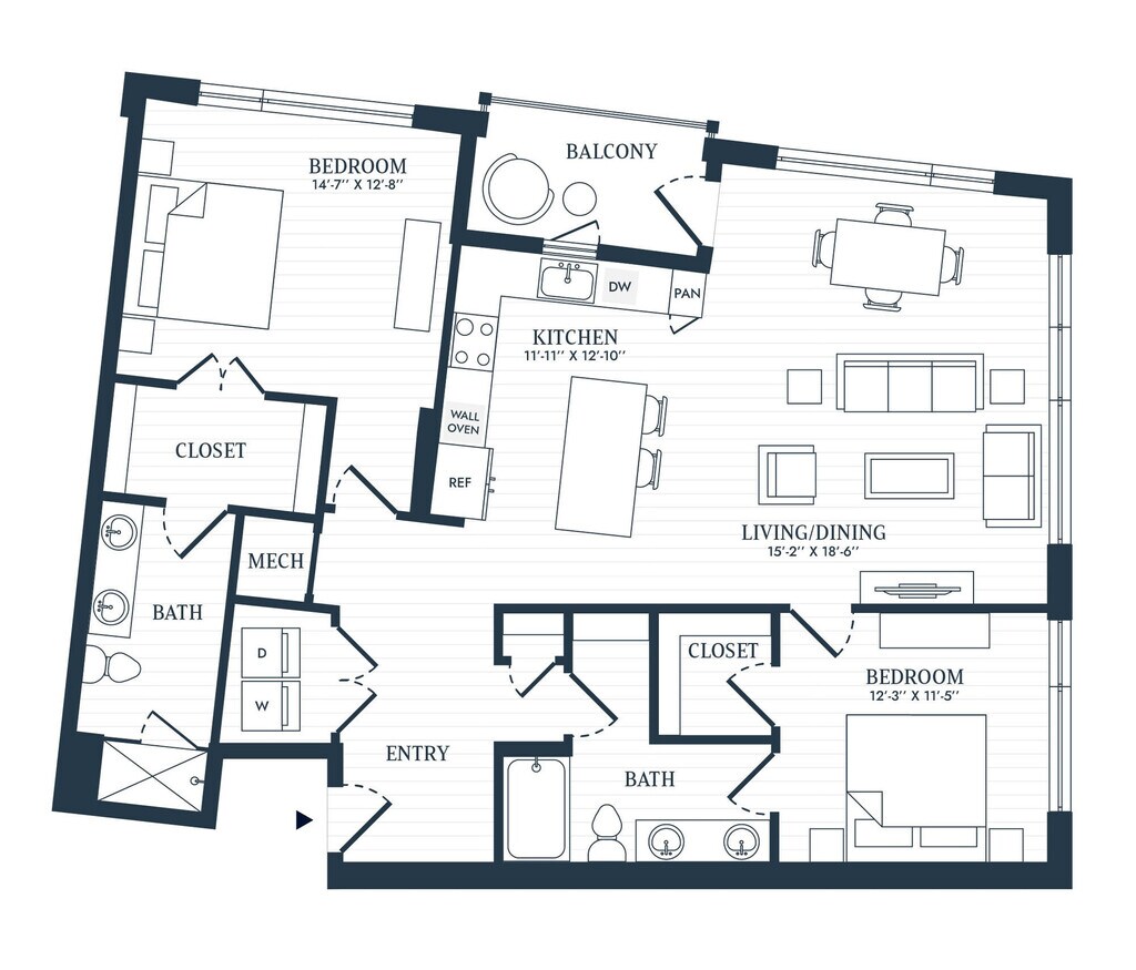 1 Bed, 1 Bath, 728 sq ftAvailable July 9, 2026Model Gallery