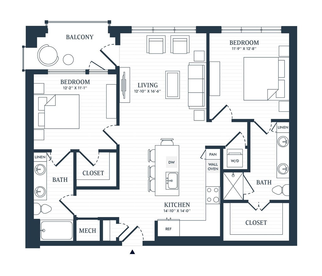 Apartment Model: A3$1,7501 Bedroom, 1 Bath, 728 sq ftAvailable July 9, 2026Floor plans are artist's rendering. All dimensions are approximate. Actual product and specifications may vary in dimension or detail. Not all features are available in every rental home. Prices and availability are subject to change. Base rent is based on monthly frequency. Additional fees may apply, such as but not limited to package delivery, trash, water, amenities, etc. Deposits vary. Please see a representative for details.