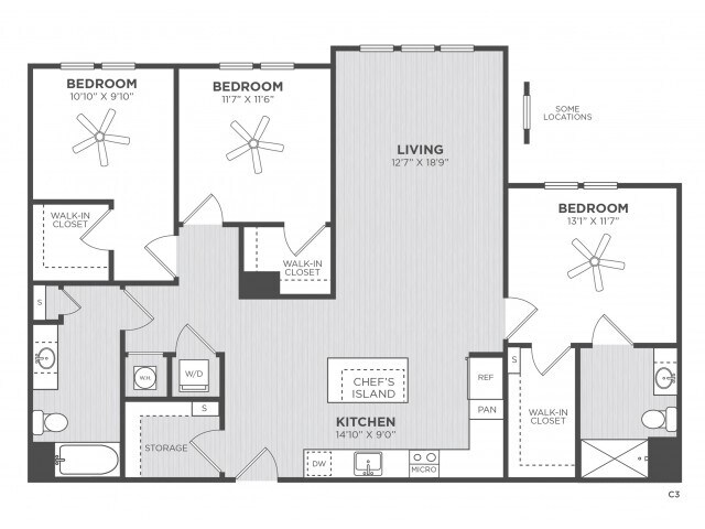 The Point at 3 North offers Studio to 3 Bedroom apartments starting from $2,416 and having 515–1,635 sq ft. Here is the current pricing and availability: