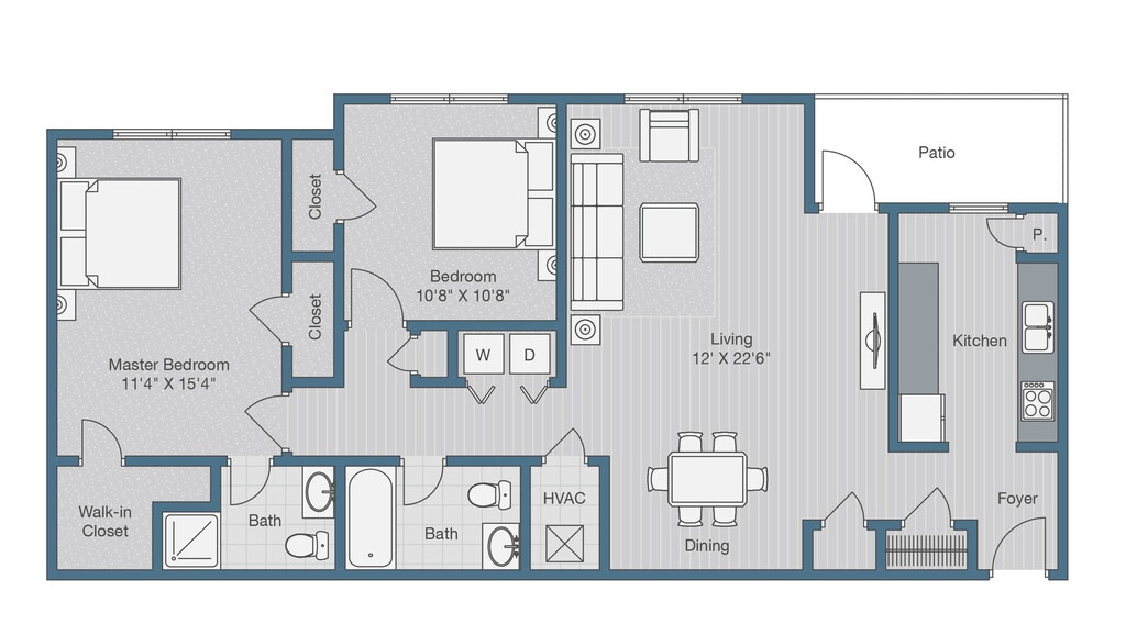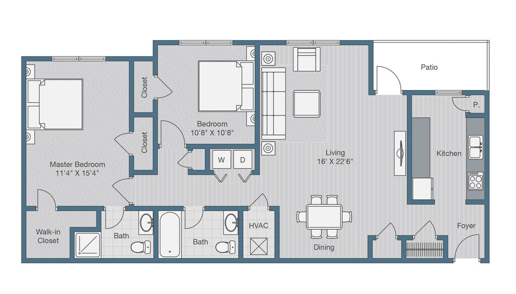 2 Beds, 2 Baths, 944 sq ftAvailable NowModel Gallery