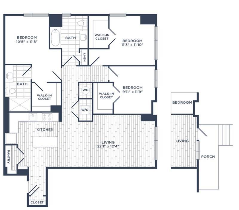 Studio to 3 Bedroom Apartments at The Point at Eisenhower Square currently range from $1,980 to $4,459