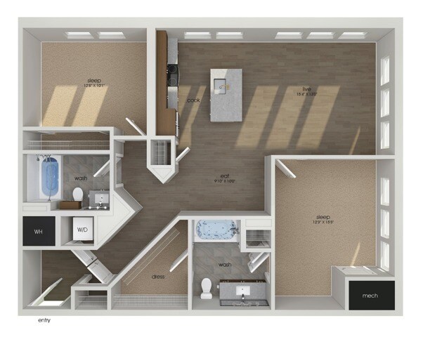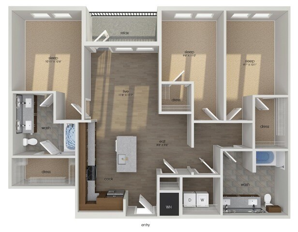 A01 - Floorplan 1 Apartment Unit: 3412Apartment Model: A01From $2,2661 Bedroom, 1 Bath, 704 sq ftAvailable NowFloorplan A14