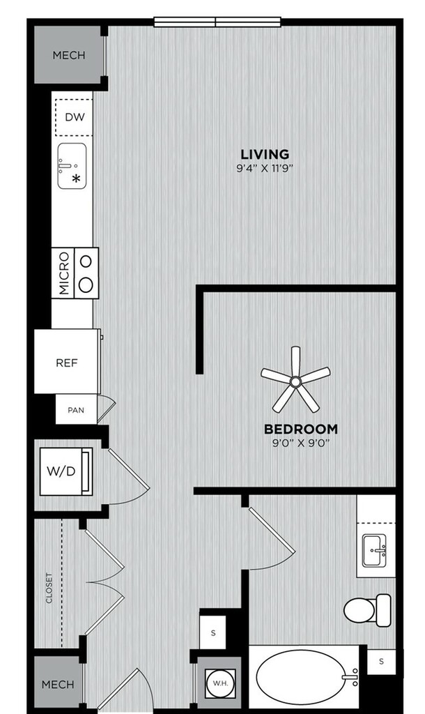Studio, 1 Bath, 631 sq ftPlus FeesAvailable NowModel Gallery