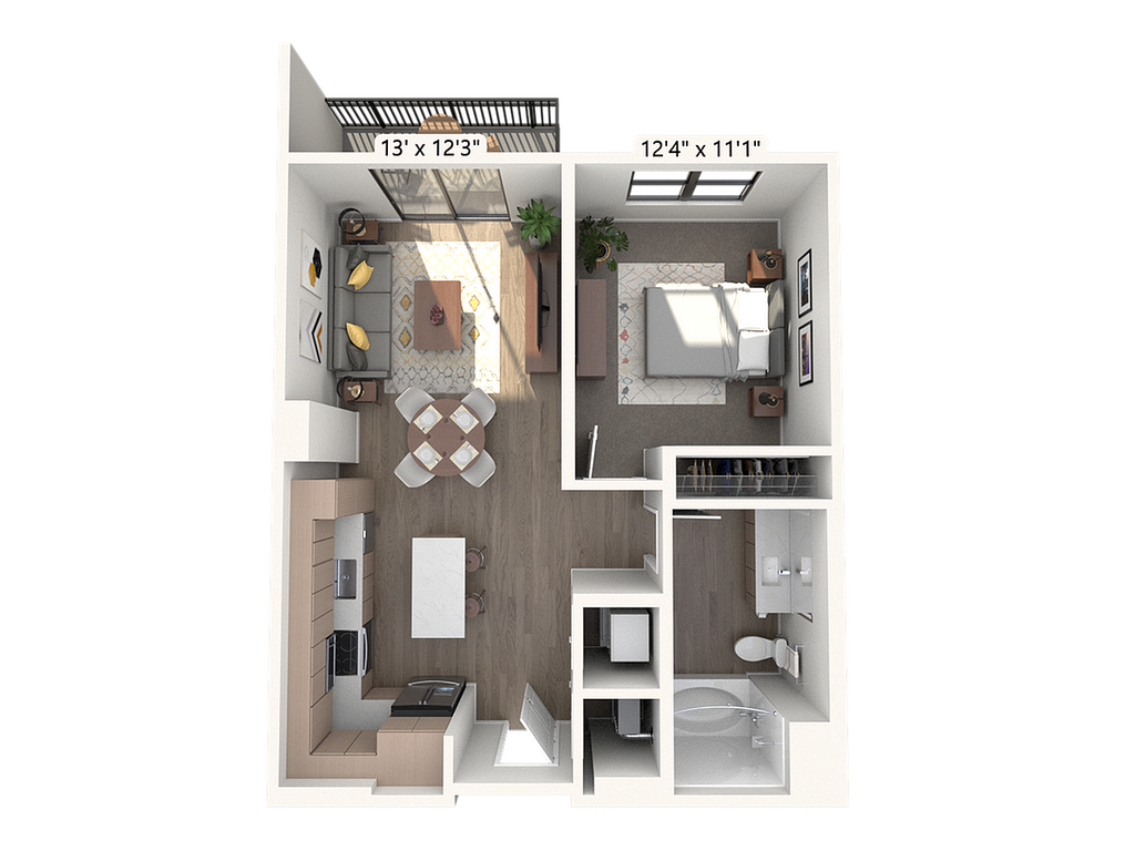 1 Bed, 1 Bath, 764 sq ftAvailable NowModel Gallery