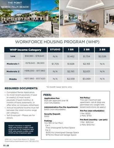 The current rent special at The Point at North Palm Beach is: LIMITED TIME ONLY!~~Move in by 11/30 & get $2,500 OFF the first full month's rent on select 3-bed townhomes or 1/2 month free on select 1 bed WFH apts! BONUS: Apply within 48 hours of touring and save up to $525! 12+ month leases only. Restrictions apply..