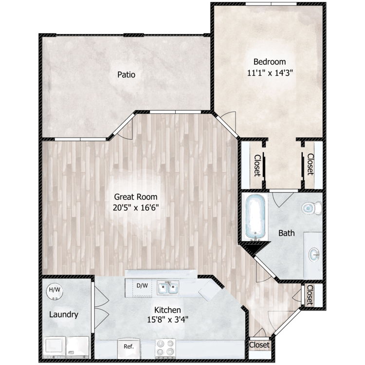 Apartment Model: The HarmonyFrom $1,2841 Bedroom, 1 Bath, 803 sq ftAvailable Now![]()