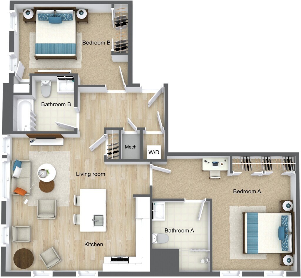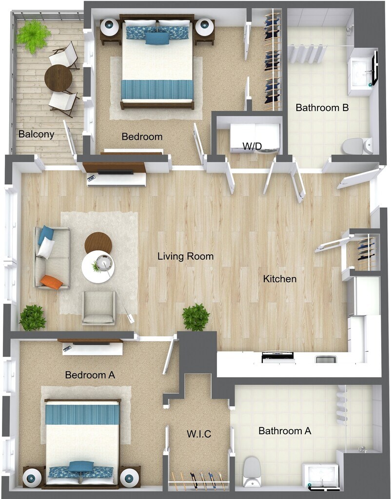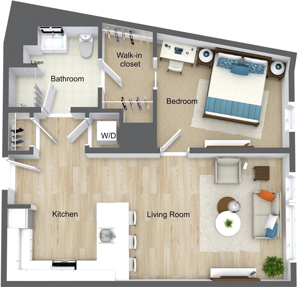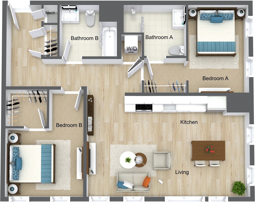 1 Bed, 1 Bath, 718 sq ftPlus FeesAvailable NowModel Gallery