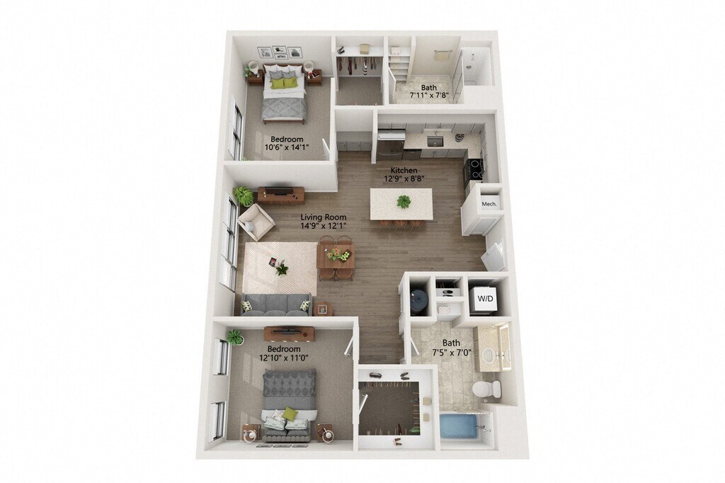 A12 - Floorplan 1 Apartment Unit: 203Apartment Model: A12$2,6991 Bedroom, 1 Bath, 783 sq ftAvailable NowFloorplan A2