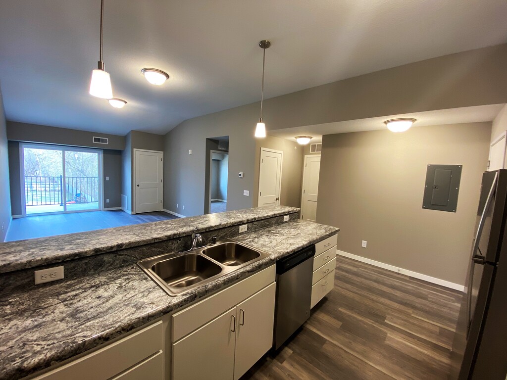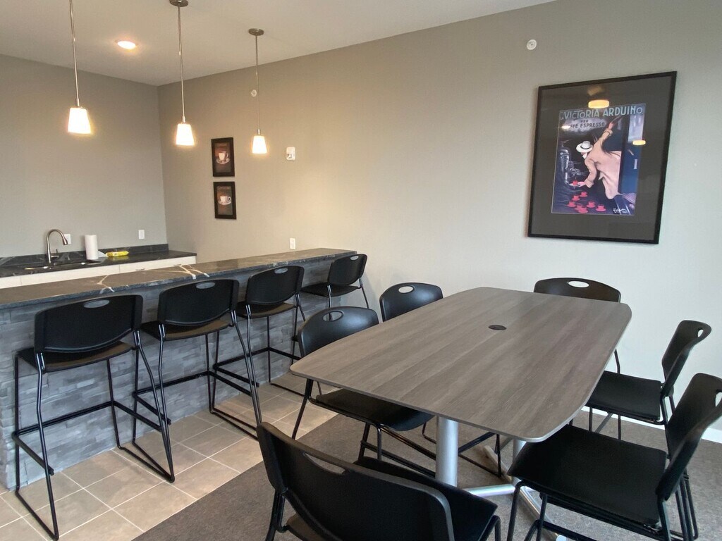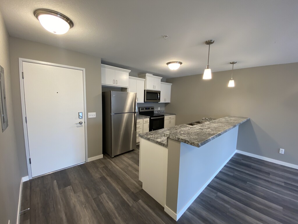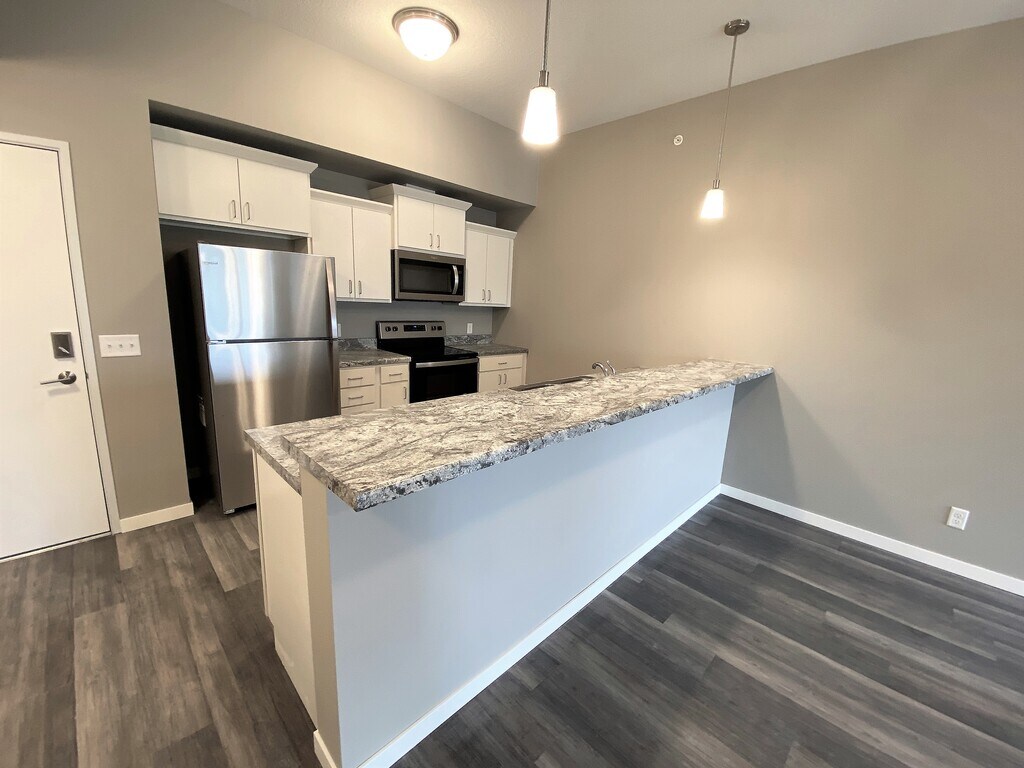 The Pointe @ Merchant Square welcomes you to a modern feel home with the ease of maintenance free apartment living. We offer 6 month, 9 month, 12 month, 15 month and 18 month lease terms to best fit your housing needs. The Pointe @ Merchant Square consists of 1 and 2 bedroom open floorplan units with a spacious kitchen including stainless steel appliances and large living area with hardwood style flooring. Take advantage of the fitness center to help unwind after a long day at work. Have a family gathering coming up? We have just the spot in our furnished Social Space with a large flat screen TV and fireplace. Garage stalls and storage units are available, as well as off street parking in the well-lit parking lot. The building is equipped with controlled access and security camera system. We are conveniently located off Interstate 35, near restaurants, shopping, hotels and multiple employers. Enjoy sitting outside on your very own balcony or grill your favorite meal on the relaxing community patio. Let your dog meet other four-legged friends at our designated pet run.