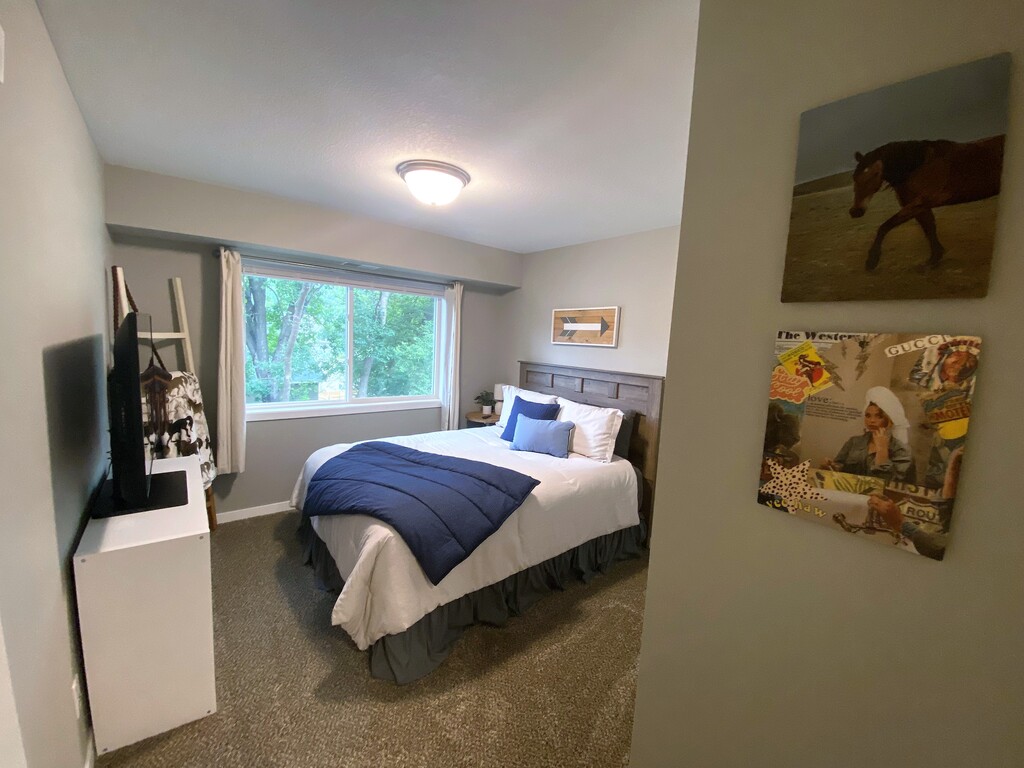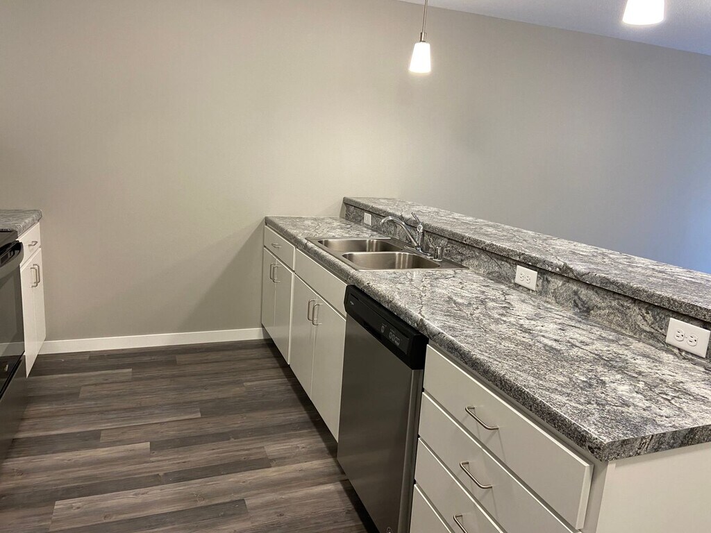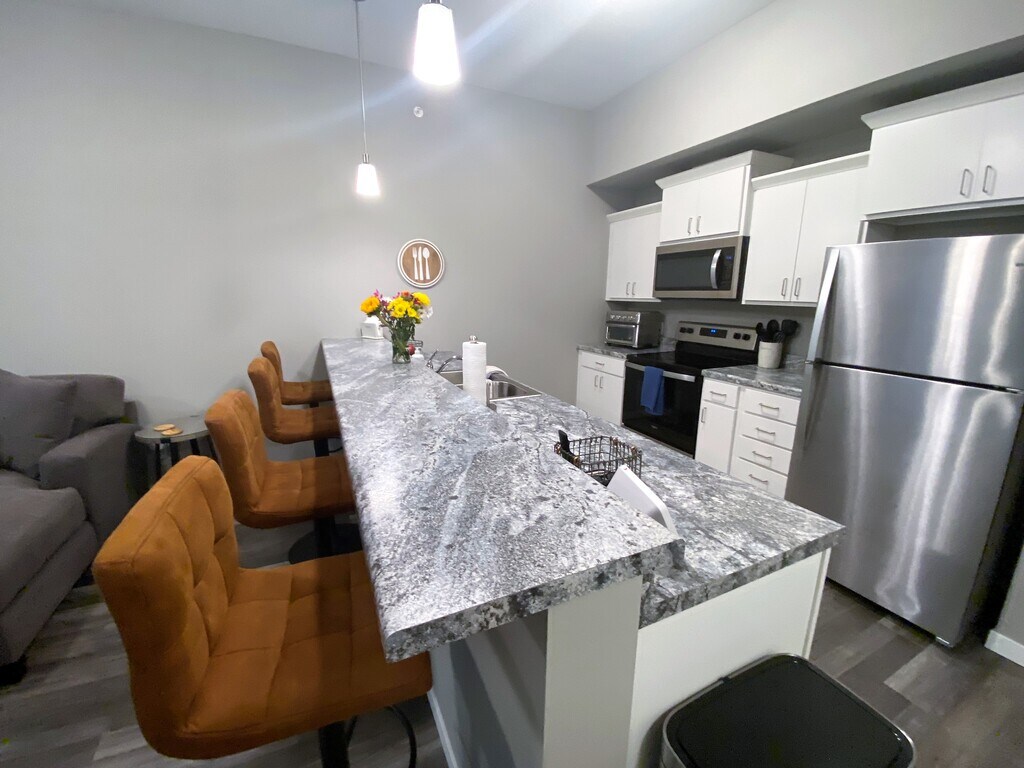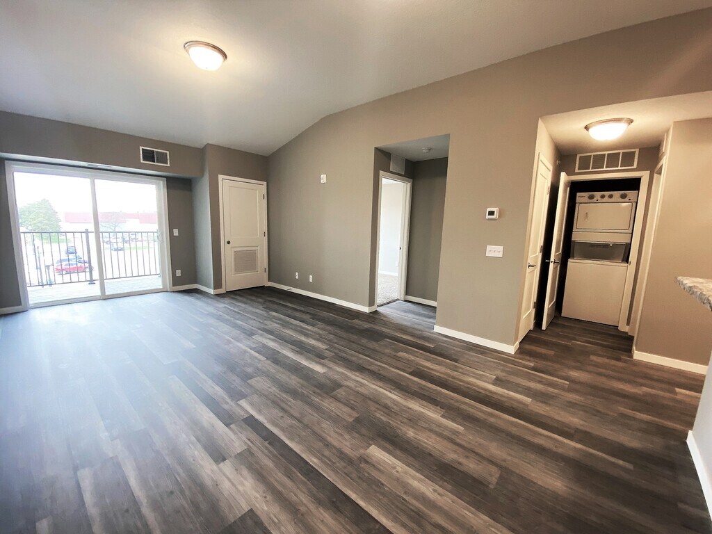 The Pointe @ Merchant Square welcomes you to a modern feel home with the ease of maintenance free apartment living. We offer 6 month, 9 month, 12 month, 15 month and 18 month lease terms to best fit your housing needs. The Pointe @ Merchant Square consists of 1 and 2 bedroom open floorplan units with a spacious kitchen including stainless steel appliances and large living area with hardwood style flooring. Take advantage of the fitness center to help unwind after a long day at work. Have a family gathering coming up? We have just the spot in our furnished Social Space with a large flat screen TV and fireplace. Garage stalls and storage units are available, as well as off street parking in the well-lit parking lot. The building is equipped with controlled access and security camera system. We are conveniently located off Interstate 35, near restaurants, shopping, hotels and multiple employers. Enjoy sitting outside on your very own balcony or grill your favorite meal on the relaxing community patio. Let your dog meet other four-legged friends at our designated pet run.