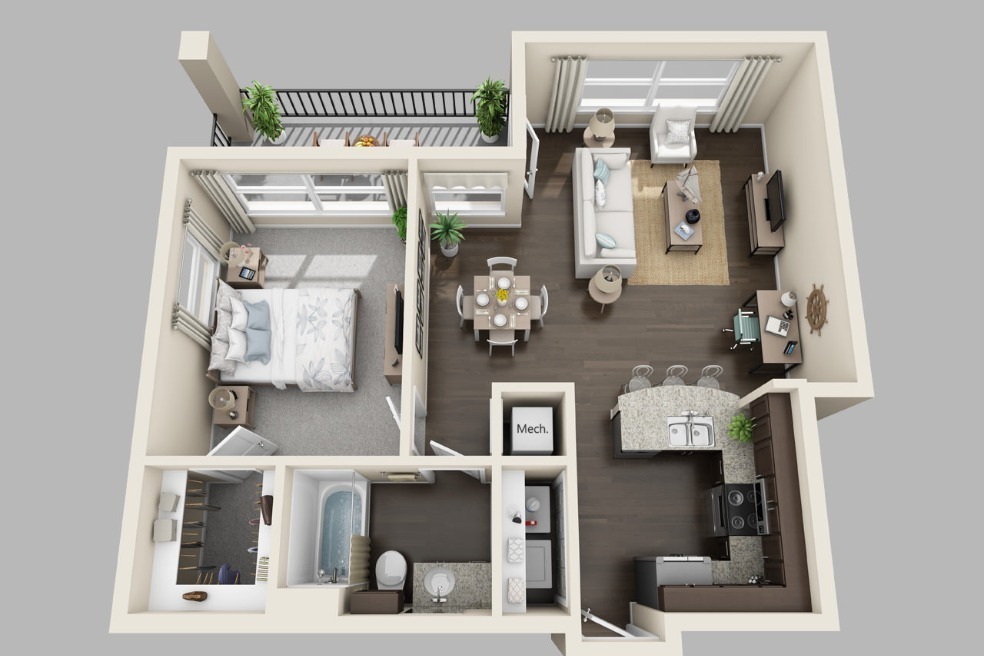 1 Bed, 1 Bath, 900 sq ftAvailable NowLargest 1 BedroomThis is the largest 1 Bedroom at this PropertyModel Gallery