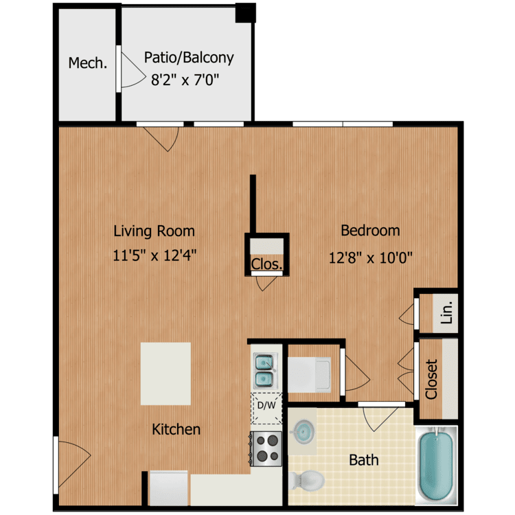 Studio, 1 Bath, 629 sq ftTotal Monthly PriceAvailable NowModel Gallery