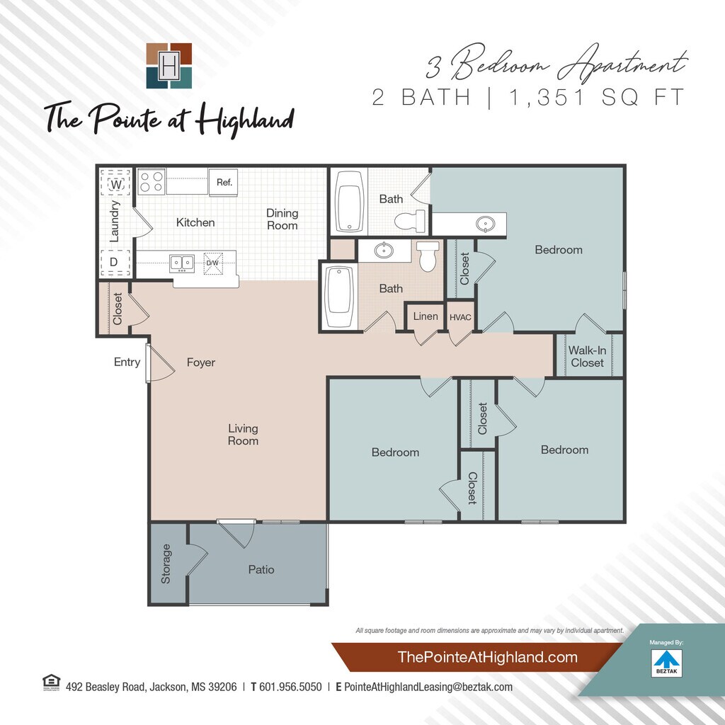 The Pointe at Highland is located in the North Jackson Neighborhood and 39206 Zip code of Jackson, MS. This community is professionally managed by BEZTAK Properties