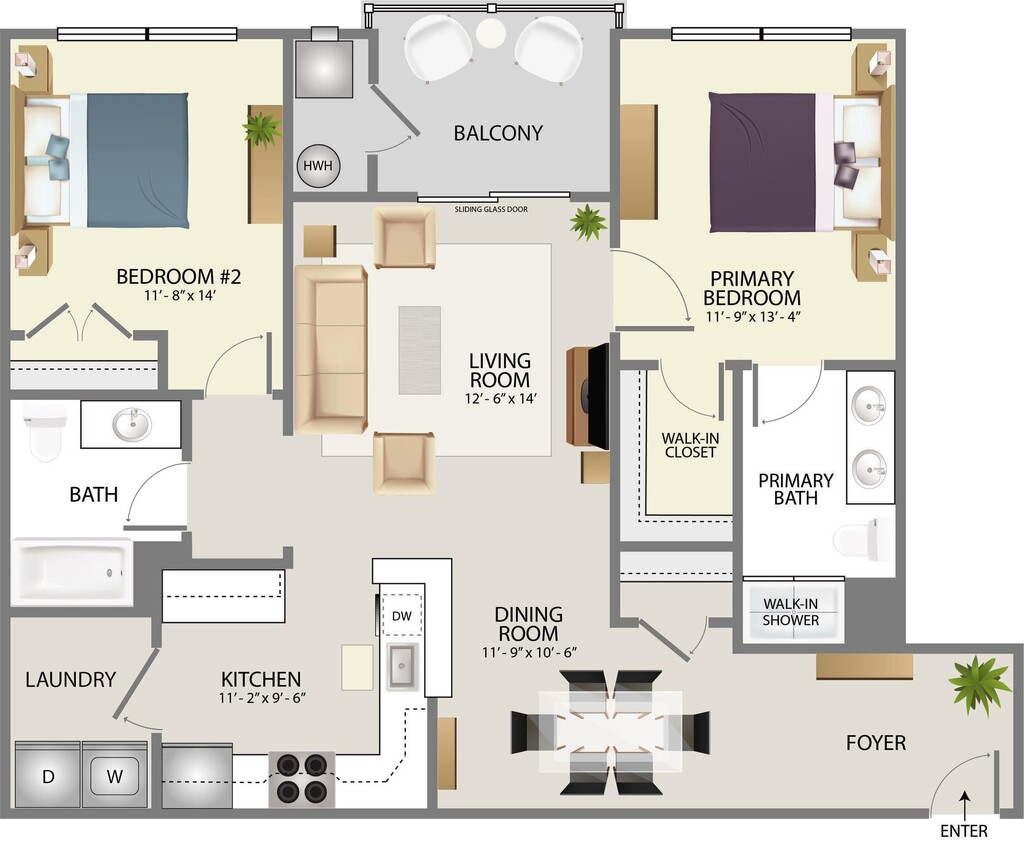 2 Beds, 2 Baths, 1326 sq ftAvailable Dec 31Model Gallery