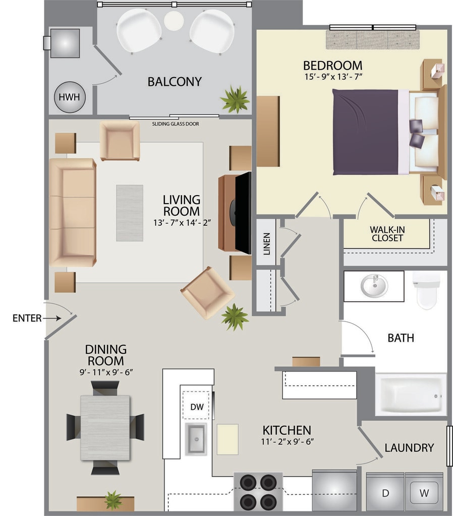 1 Bed, 1 Bath, 859 sq ftAvailable NowModel Gallery