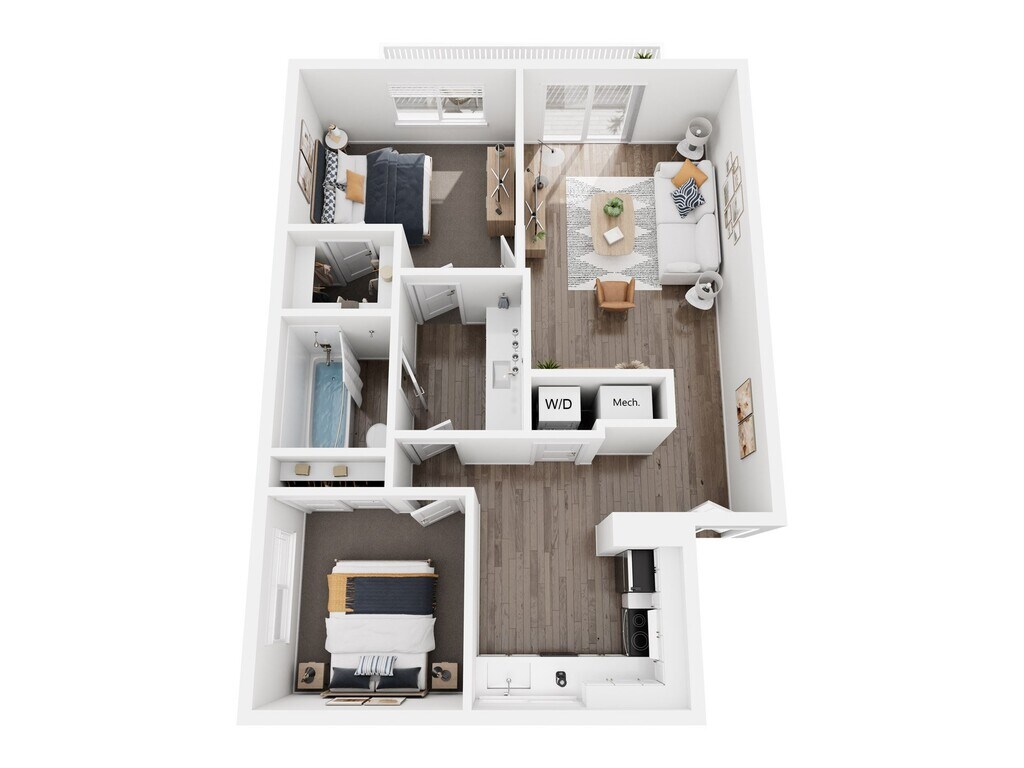 2 Beds, 1 Bath, 850 sq ftAvailable NowModel Gallery