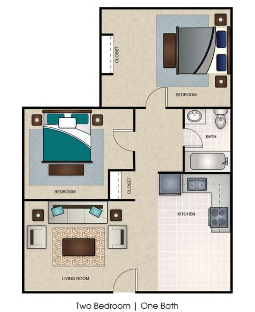 Apartment Model: 2 Bed/1 Bath$1,0992 Bedroom, 1 Bath, 950 sq ftAvailable Now![]()