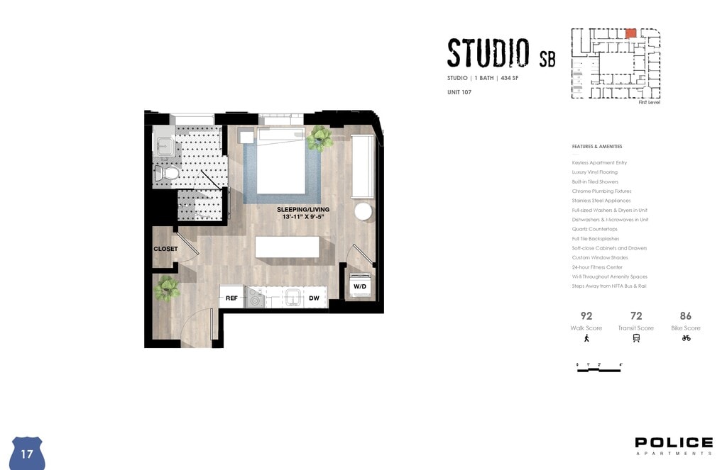 The Police Apartments offers Studio to 1 Bedroom apartments starting from $1,200 and having 400–957 sq ft. Here is the current pricing and availability: