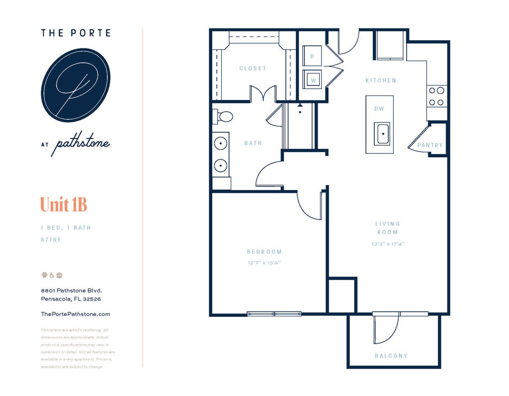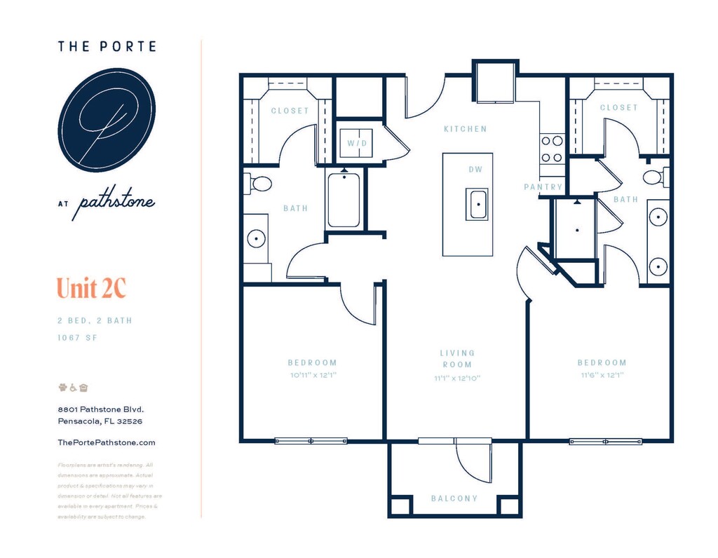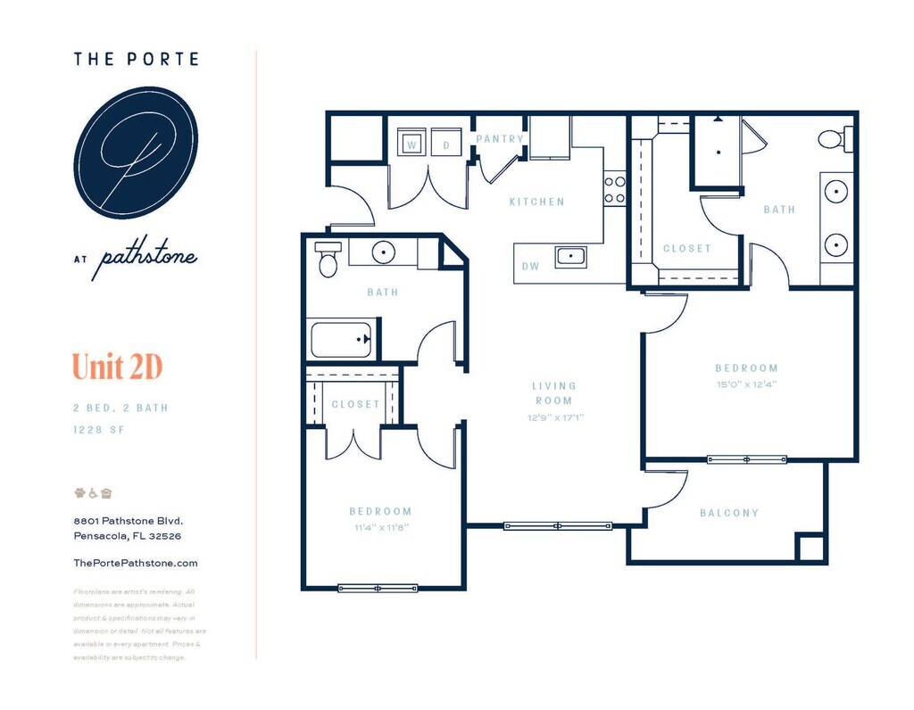 The Porte at Pathstone offers 1 to 3 Bedroom apartments starting from $1,652 and having 871–1,469 sq ft. Here is the current pricing and availability:
