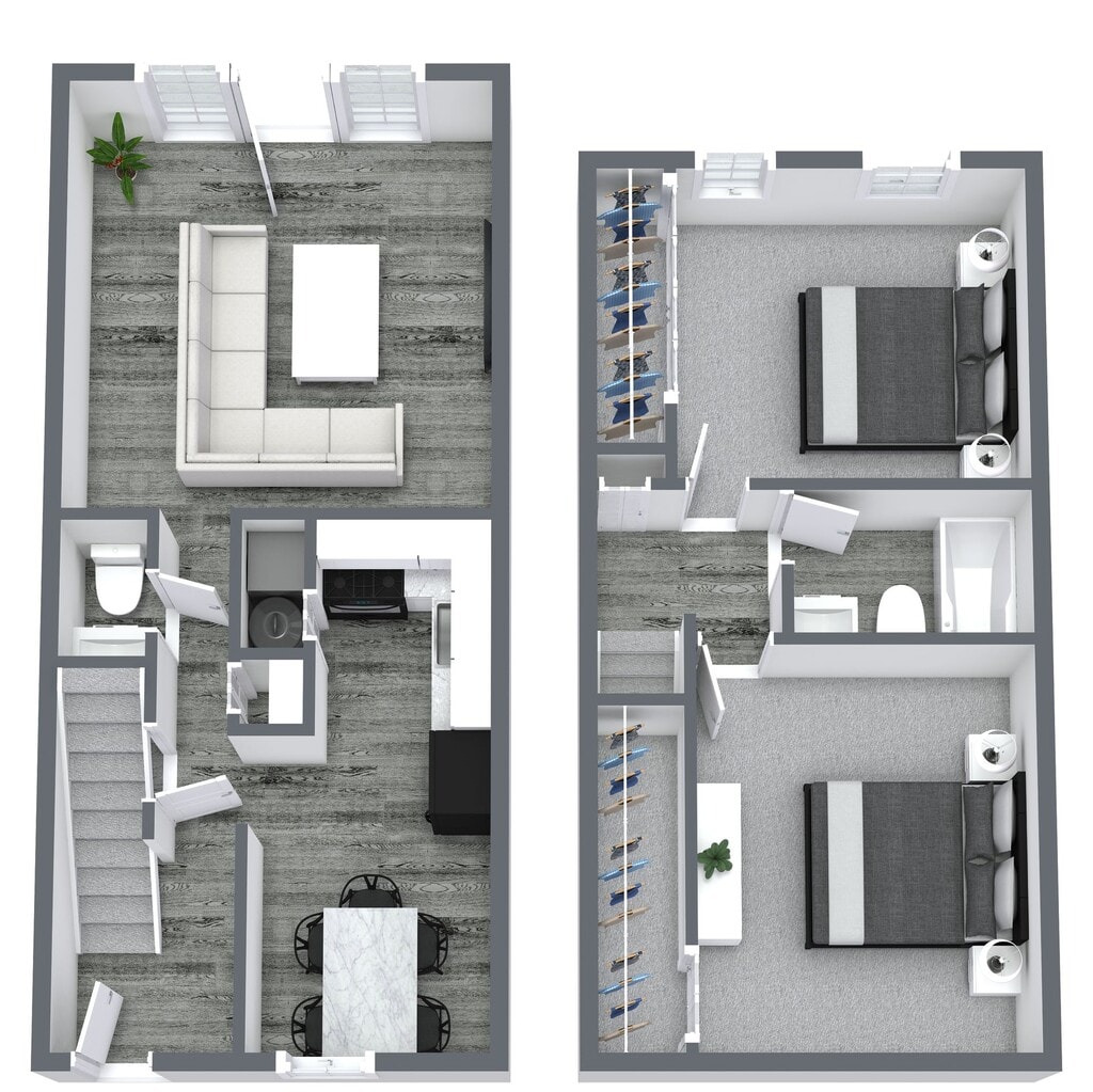 Apartment Model: 2 Bedroom 1.5 Bath Townhouse$1,0492 Bedroom, 1.5 Bath, 988 sq ftUnavailable![]()