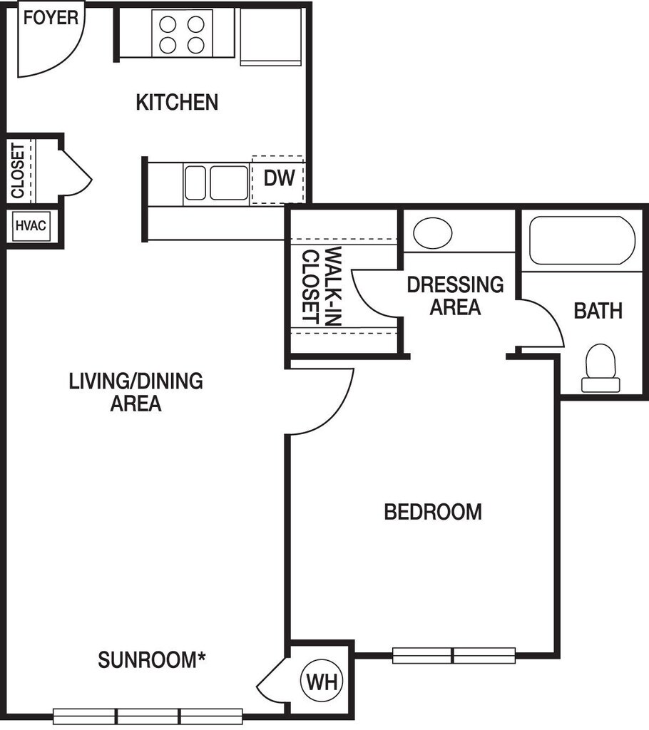 Studio, 1 Bath, 613 sq ftLargest StudioThis is the largest Studio at this PropertyModel Gallery