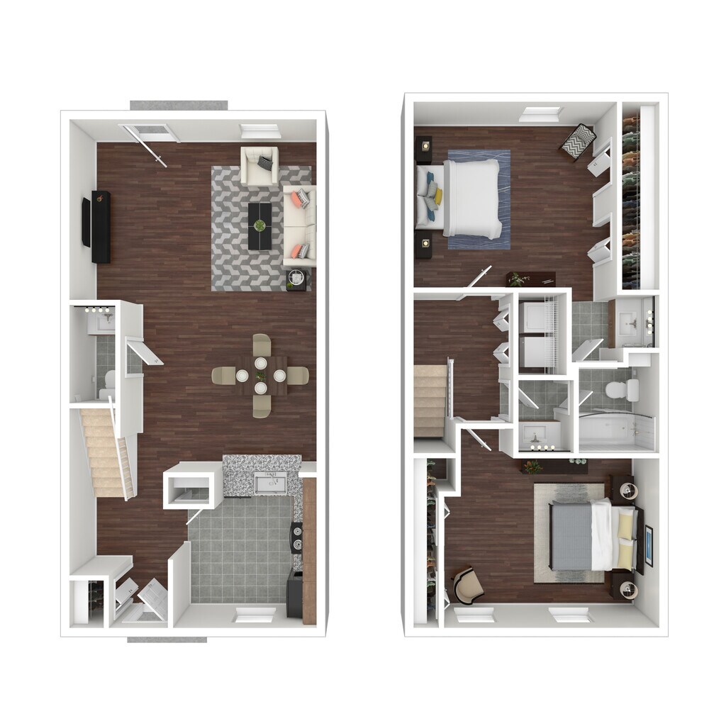 2 Beds, 2.5 Baths, 1180 sq ftModel Gallery