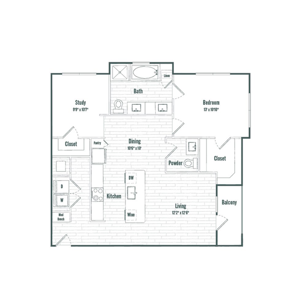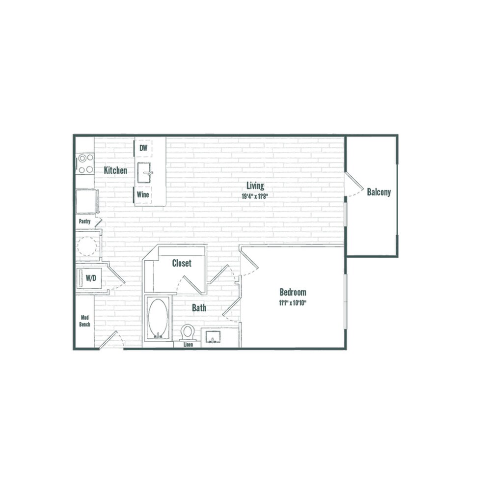 1 Bed, 1 Bath, 764 sq ftAvailable NowModel Gallery