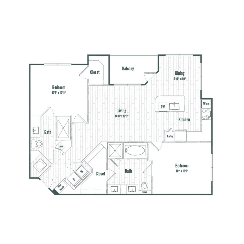 1 Bed, 1 Bath, 855 sq ftAvailable NowModel Gallery