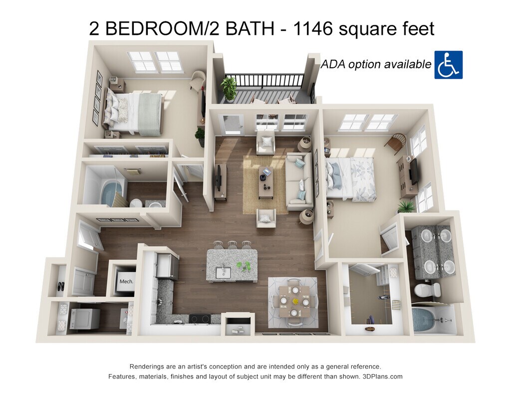2 Beds, 2 Baths, 1185 sq ftModel Gallery