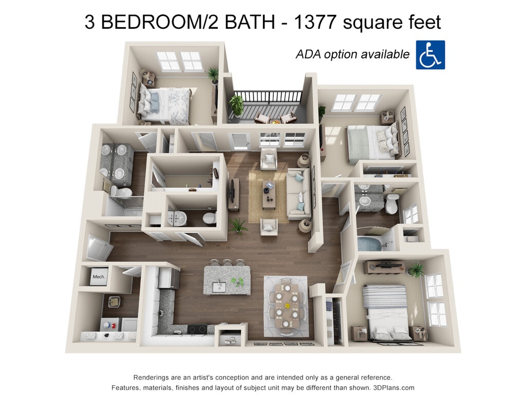 2 Beds, 2 Baths, 1203 sq ftLargest 2 BedroomThis is the largest 2 Bedroom at this PropertyModel Gallery