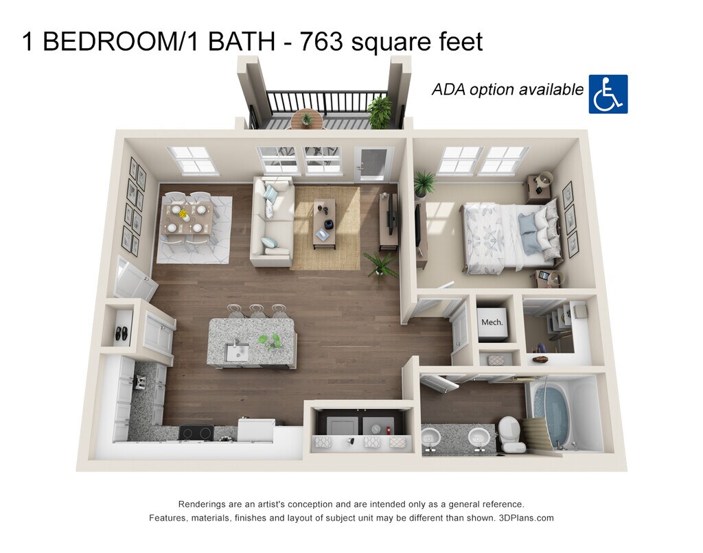 1 Bed, 1 Bath, 763 sq ftModel Gallery