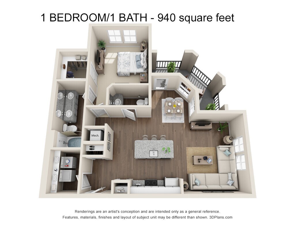 1 Bed, 1.5 Baths, 940 sq ftAvailable Oct 31Largest 1 BedroomThis is the largest 1 Bedroom at this PropertyModel Gallery