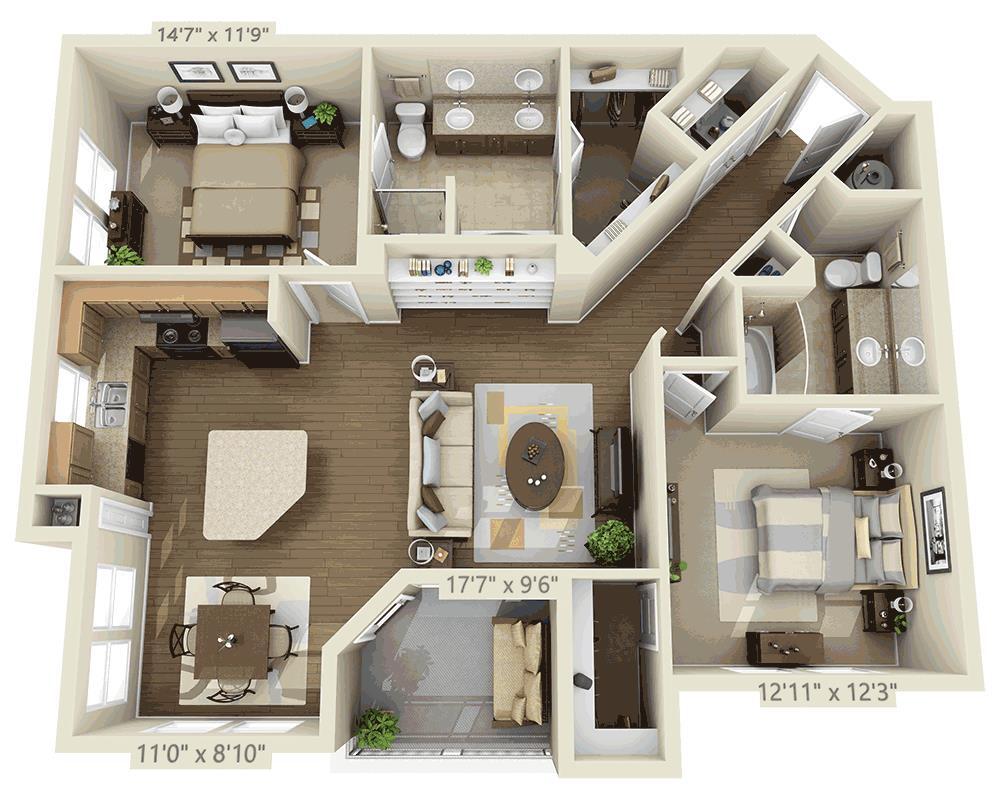 The Preserve at Gateway offers 1 to 2 Bedroom apartments starting from $1,626 and having 733–1,205 sq ft. Here is the current pricing and availability: