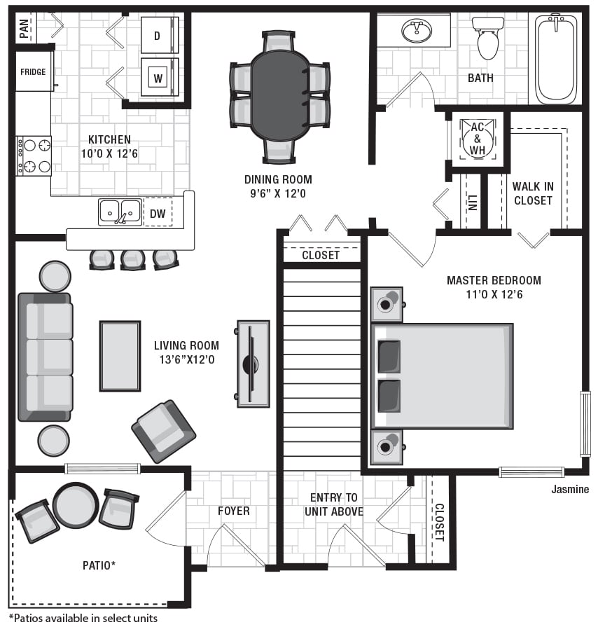 Apartment Model: JasmineFrom $1,3771 Bedroom, 1 Bath, 748 sq ftAvailable Now![]()