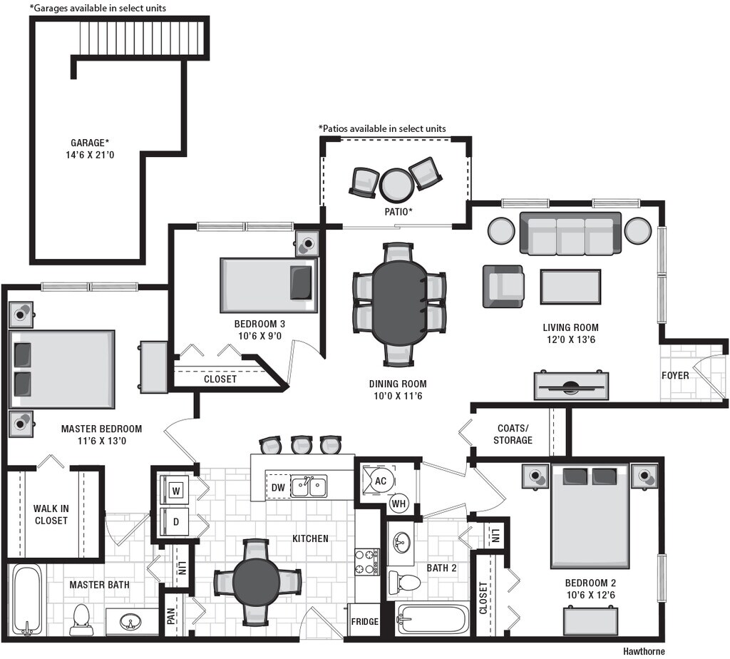 Apartment Model: HawthorneFrom $1,9023 Bedroom, 2 Bath, 1307 sq ftAvailable Now![]()