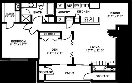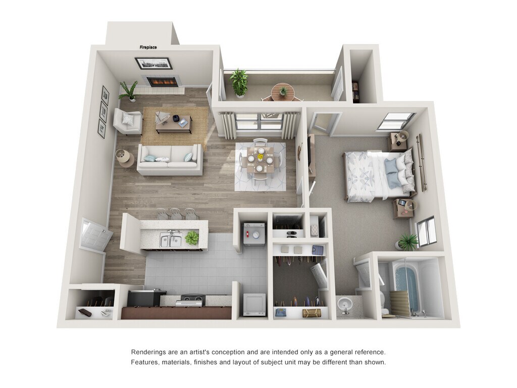 1 Bed, 1 Bath, 628 sq ftAvailable NowModel Gallery