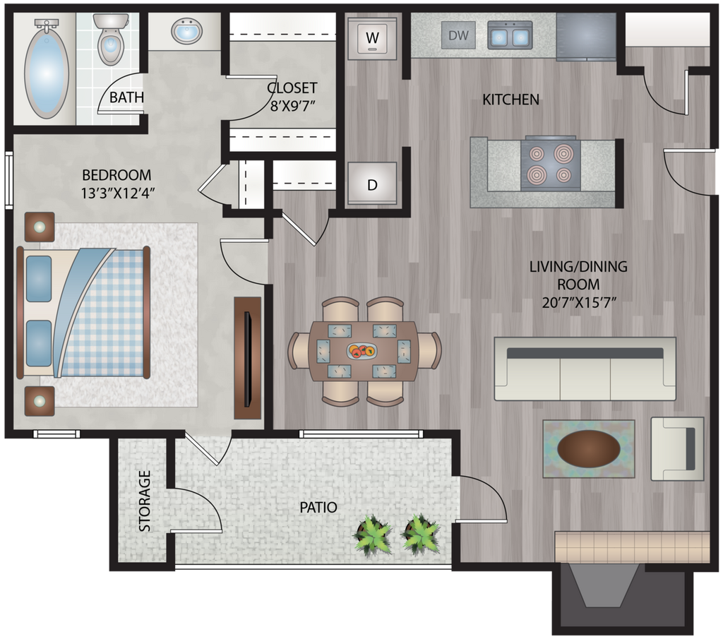Apartment Model: The Hot SpringsFrom $7851 Bedroom, 1 Bath, 543 sq ftAvailable Now![]()